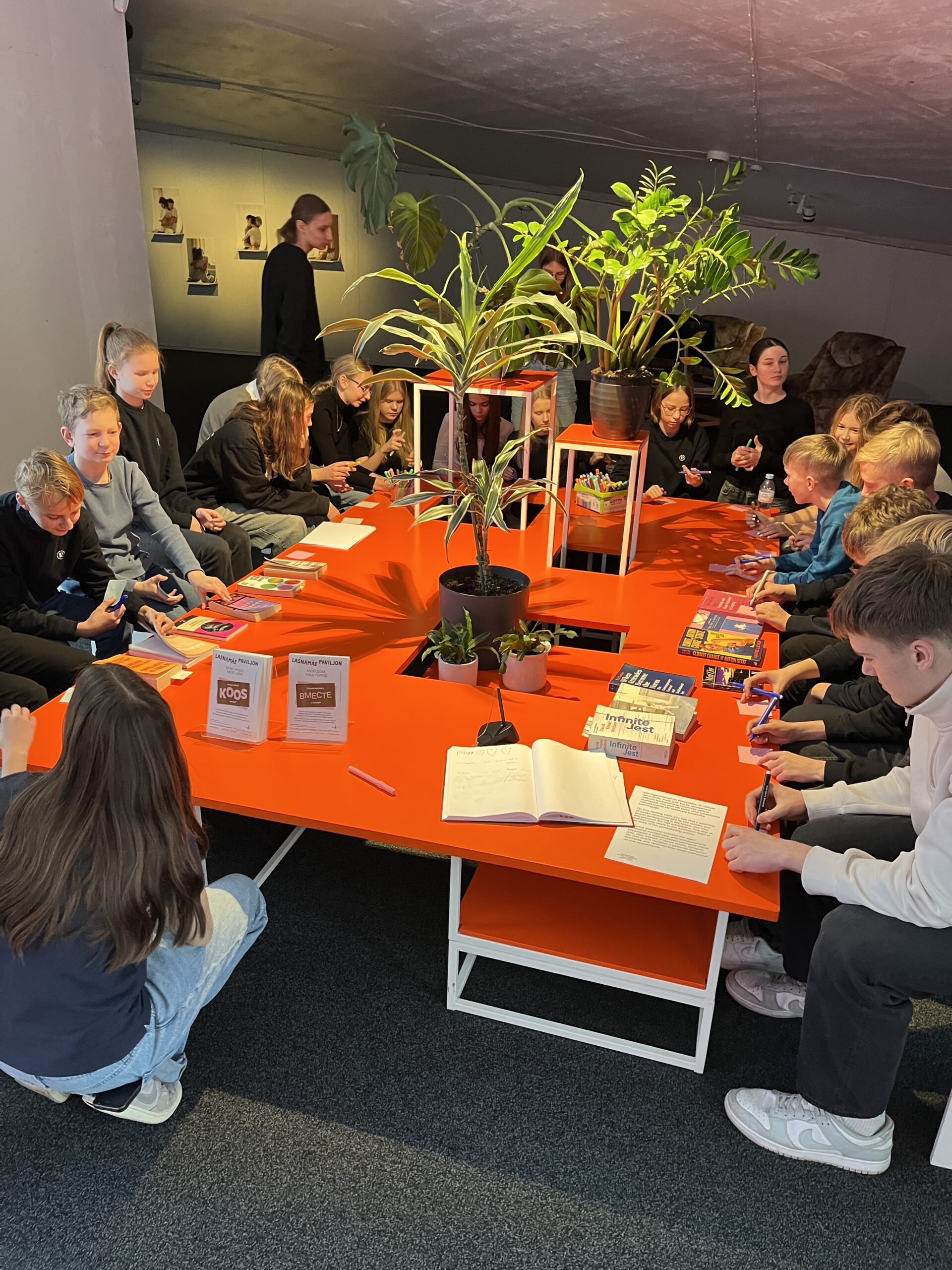 Näitustel esitletud kunstiteosed on alati ühiskonnaga dialoogis ja koos kunstnikega on meile väga oluline ka laste arvamus. Tundides pöörame sellele erilist tähelepanu, sest noor põlvkond on ühiskonna särav osa. Uurime nüüdiskunsti võtteid ning kutsume noori kuraatorite ja kunstnike arutelu põhjal dialoogi astuma. Selleks jätame teoste kõrvale oma kommentaare, mis muutuvad ühel hetkel näituse osaks, või mõtleme midagi juurde ja jagame oma arvamust ka teistega.