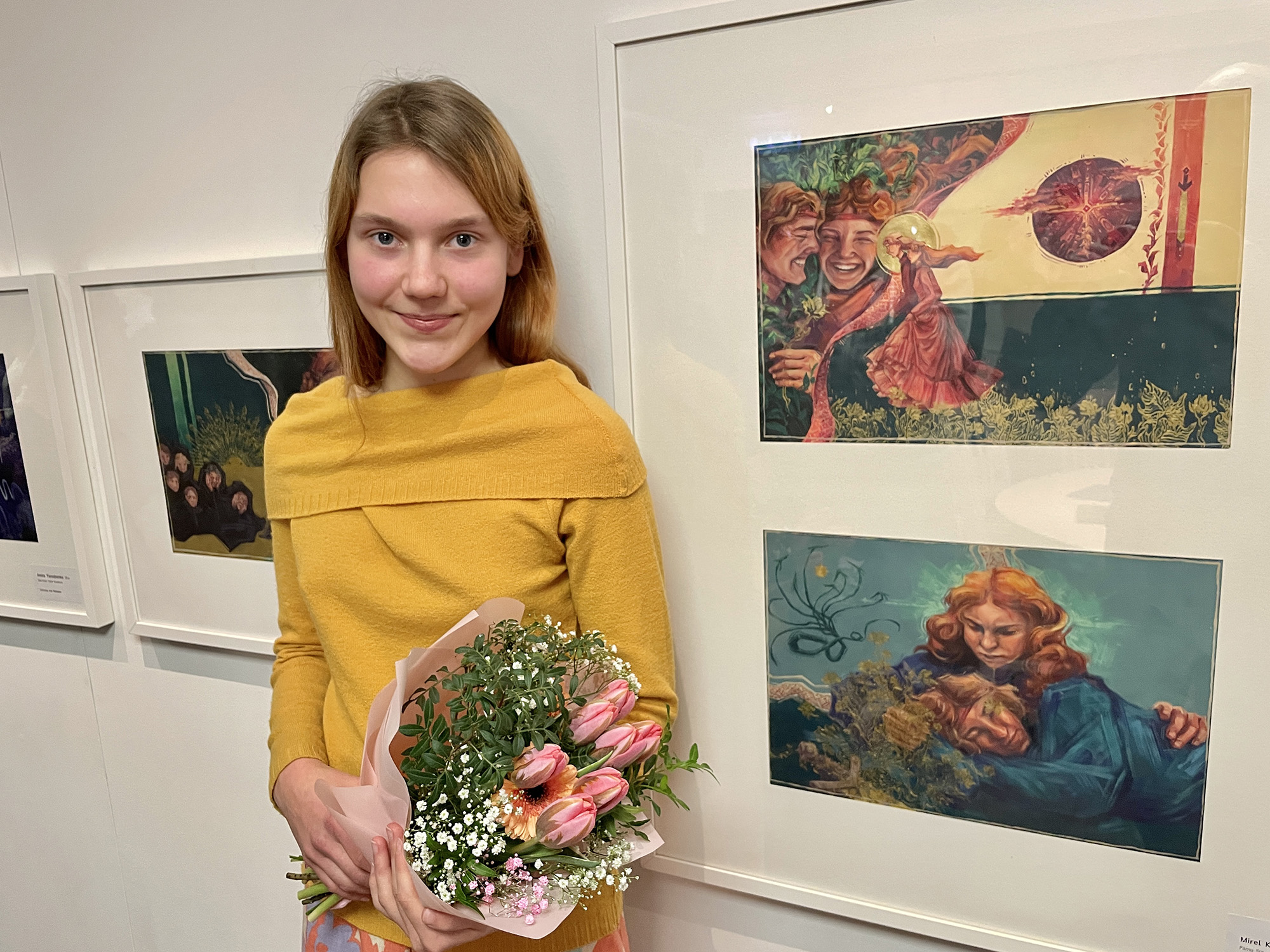 Konkursi võitja Mirel Kallas enda võidutööde ees Iloni Imedemaal. Foto: Egon Erkmann