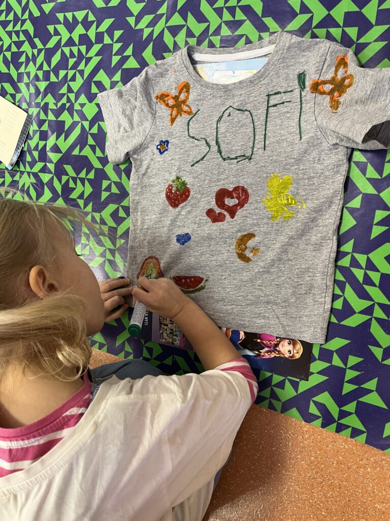 „Kui alguses oli plaanis viia ülejäänud riided koos lastega uuskasutuskeskusesse, siis vanemate soovi arvestades panime need järgmise korrani hoiule,“ ütleb Kärt Tagel. „Õpetajad on projekti raames käinud lastega ka taaskasutuskeskuses, Humana poes ja laos, kus lapsed said teada, kuidas riided sinna jõuavad, ning nägid, kuidas neid sorteeritakse. Humana töötajad viisid lasteaias aiarühmadele läbi ka T-särgi töötoa. Iga laps pidi võtma kodust kaasa vana ühevärvilise T-särgi, millele sai tekstiilivärvidega maalida või markeritega joonistada ja mida võis templitega või šablooni abil kaunistada. Tore oli näha, kui erinevalt lapsed sellele ülesandele lähenesid. Rühmades käies võib näha, et mõnel lapsel on praegugi enda kaunistatud T-särk seljas.“