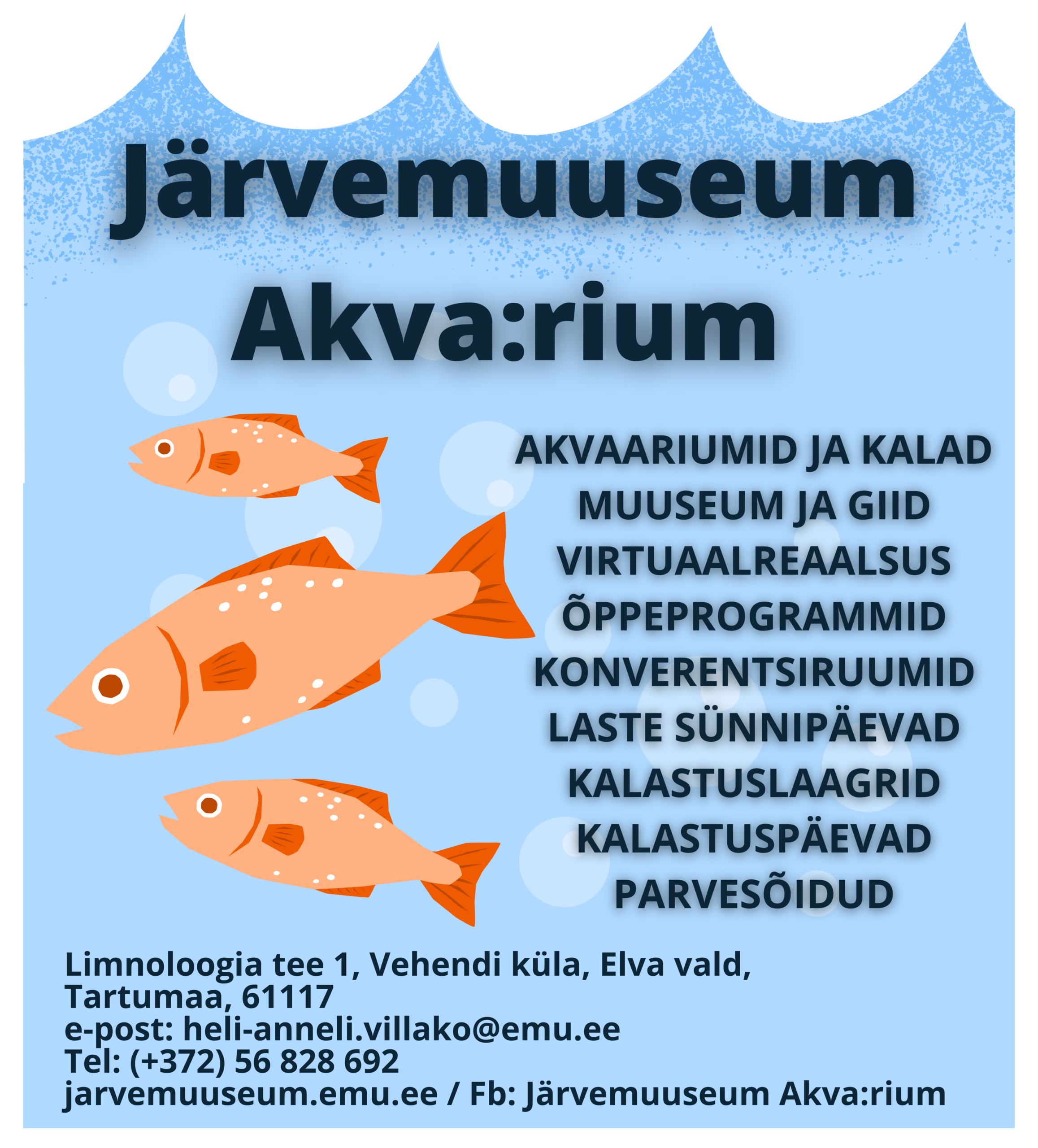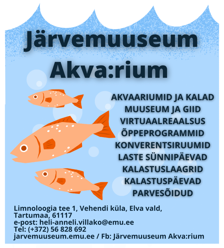 Võrtsjärve idakaldal Vehendi külas asub Limnoloogia-keskusega samas majas üks tore muuseum. Järvemuuseum ei olegi nii väga muuseum, pigem kalade loomaaed. Meil on 35 eri suurusega akvaariumi, kus elab palju kodumaiseid mageveekalu ning põnevaid tegelasi Amazonase jõest ja mujaltki. Uhkusega võime öelda, et teist nii toredat kollektsiooni kohalikke kalu ja põrandaaluseid akvaariume, mille peal saab kõndida, Eestis ei leidu. Järvemuuseumis saab näha rekordkalu, kuulata kalade jutte, seigelda VR-prillidega veealuses maailmas, uurida, kuidas läheb Võrtsjärvel, mismoodi siin kala on püütud ja püütakse, mis on ühist Võrtsjärvel ja Amazonase jõel, nautida kauneid loodusfotosid, kuulata Võrtsjärve sosinaid ja tutvuda uue põneva akvapoonikaprojektiga – süsteemiga, kus kasvavad koos kalad ja köögiviljad.