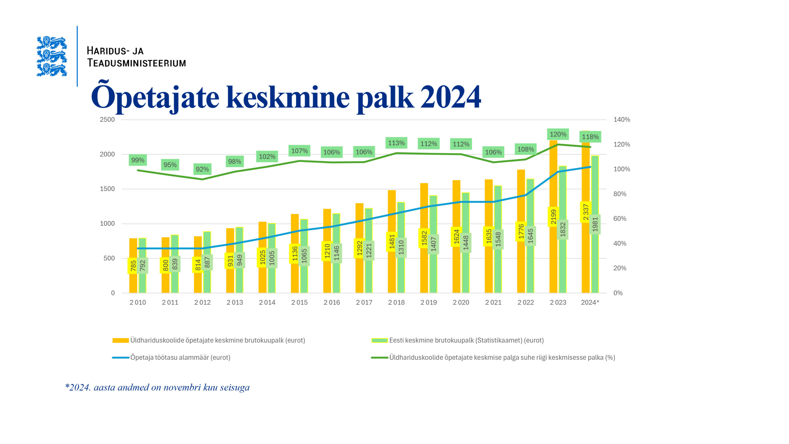 Uustalu ütles, et koolipidajatele eraldatakse riigieelarvest igal aastal haridustoetust õpilaspõhise määra alusel. „Riigi eraldatavat õpetajate tööjõukulu toetust saab kasutada nii õpetajate kui ka tugispetsialistide tööjõukulude katmiseks eeldusel, et tugispetsialistid saavad vähemalt õpetaja palga alammäära,“ selgitas ta. „Õpetajate tööjõukulude toetus sisaldab nii õpetaja palga alammäära kui ka diferentseerimiskomponenti (2025. aastal 20%).“