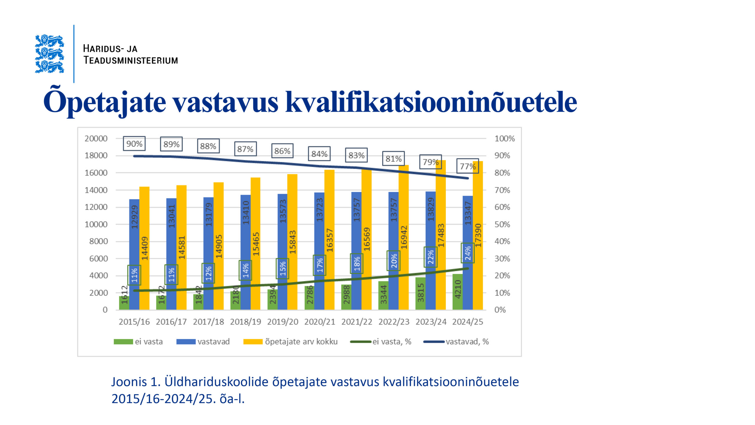 „Kvalifikatsiooninõuetele mittevastavate õpetajate osakaal kasvab,“ tõdes Uustalu. „Kvalifikatsiooninõuetele vastavate õpetajate olemasolu ei sõltu ainult sellest, mida teeb riik. Õpetajate heaolu ja järelkasv on meie kõigi ühine eesmärk. Väga oluline on, et koolipidaja ja koolijuht mõistaks, mis on nende roll ja vastutus õpetaja pädevuste ja kvalifikatsiooni tõstmisel, õpetajaid väärtustava töö- ja palgakorralduse loomisel.“