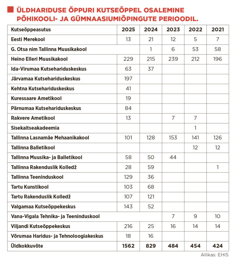 „Koolid teevad koostööd veelgi rohkem ja õpilaste arv on kindlasti suurem, kuid meil ei ole täpset ülevaadet,“ lausus haridus- ja teadusministeeriumi kutsehariduse valdkonna juht Marit Kuusk.