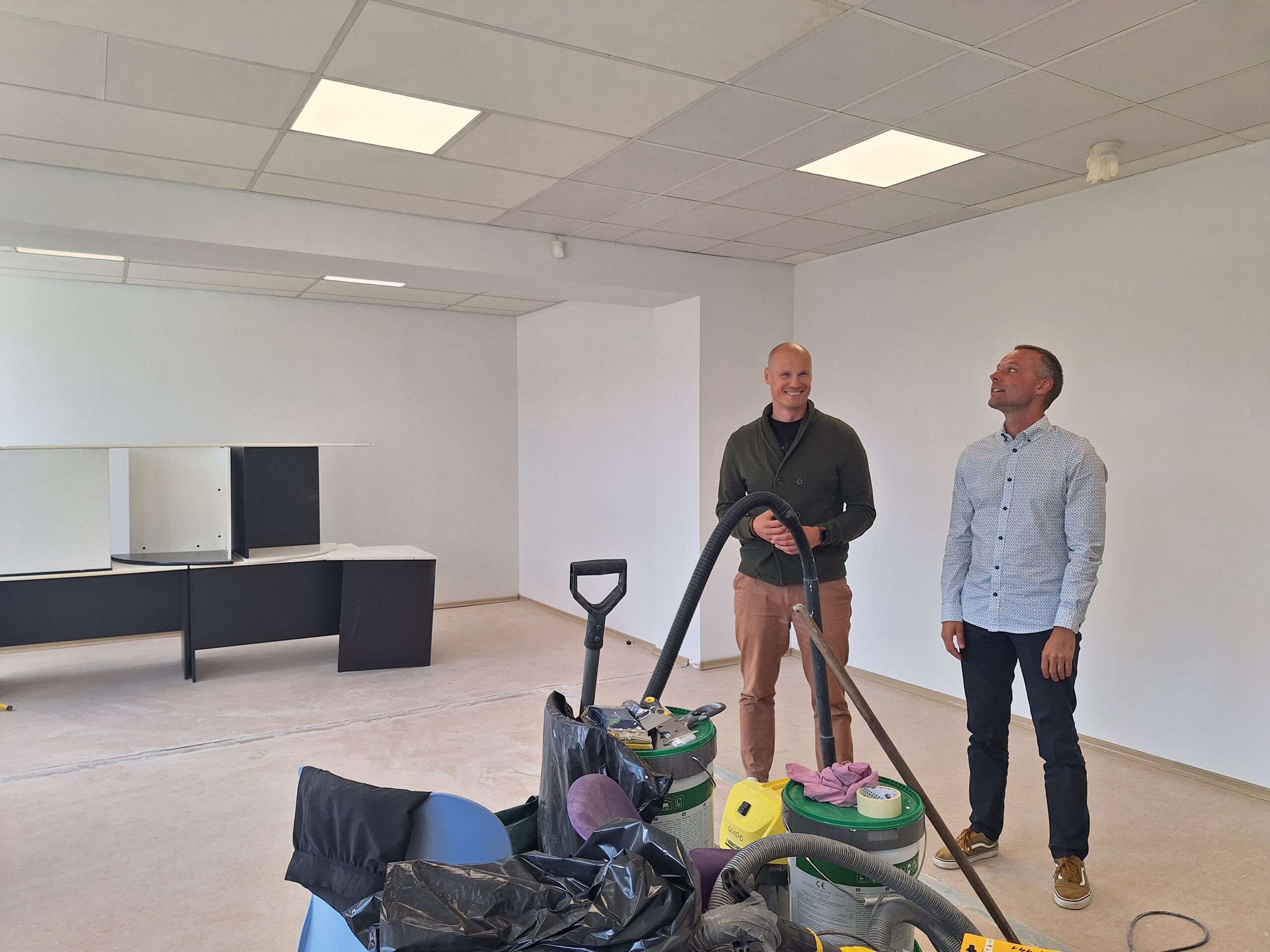 Nädal enne kooli algust võtavad Karmo Kurvits ja õppejuht Andre Pettai Õpetajate Lehe vastu ehitustolmuses klassiruumis, kus töömehed on töid lõpetamas.