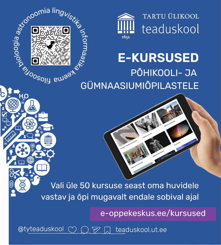 Tartu Ülikooli teaduskooli e-kursused, hübriidõpe, uurimislaborid ja õpikojad annavad noortele võimaluse siduda kooliõpe teaduse ja praktiliste kogemustega – ning viivad teadmised uuele tasemele.