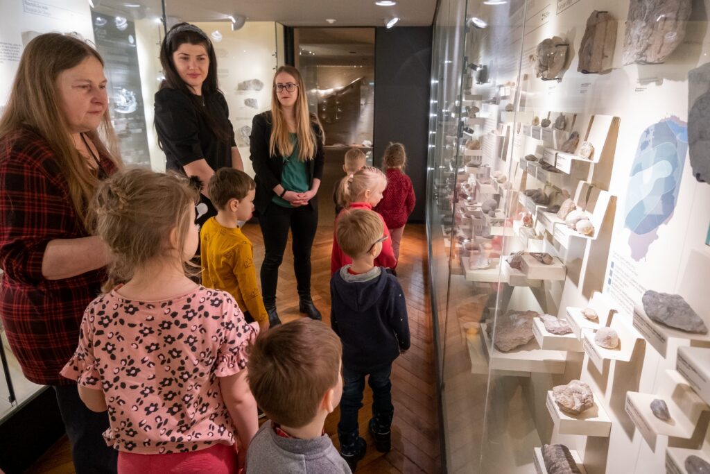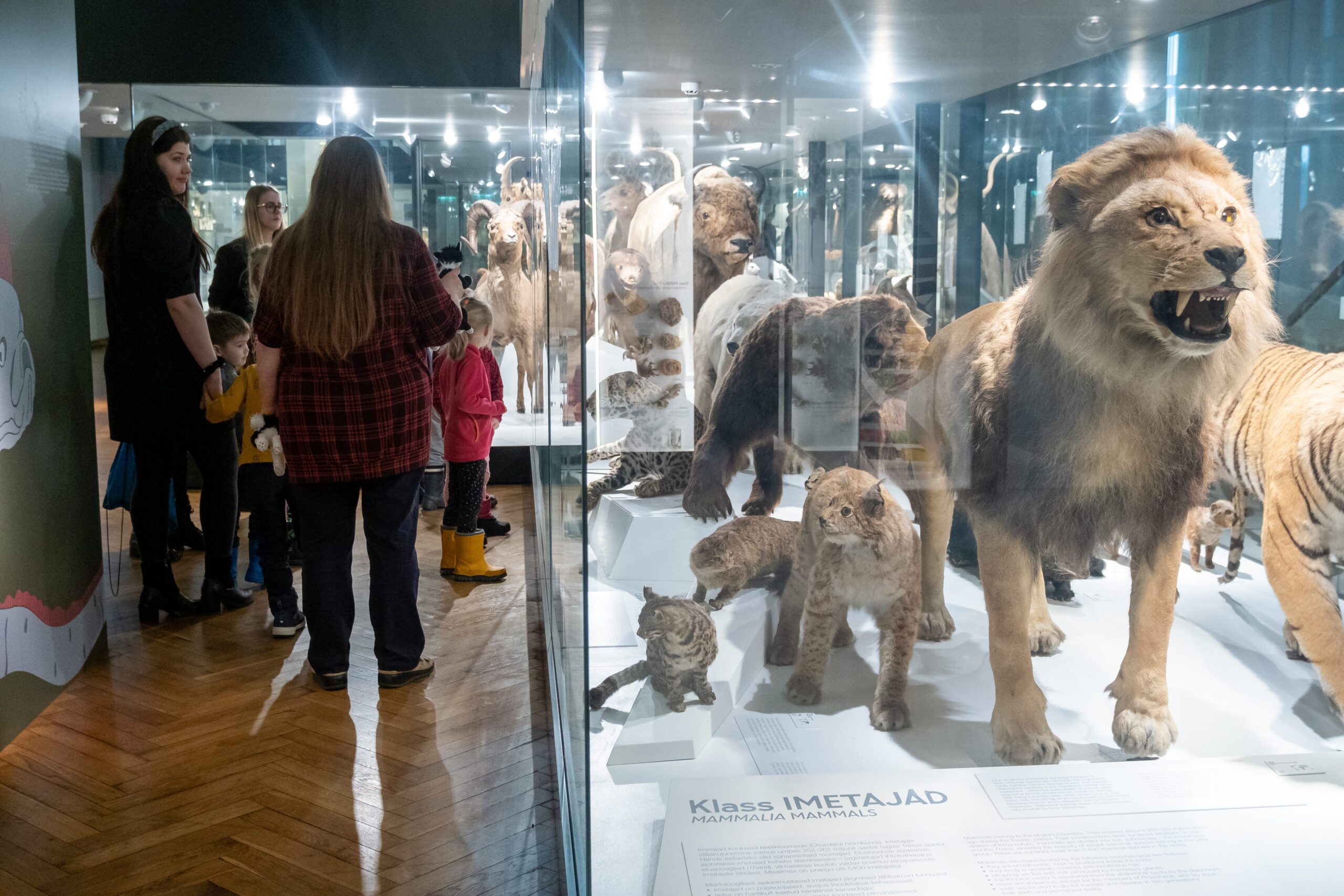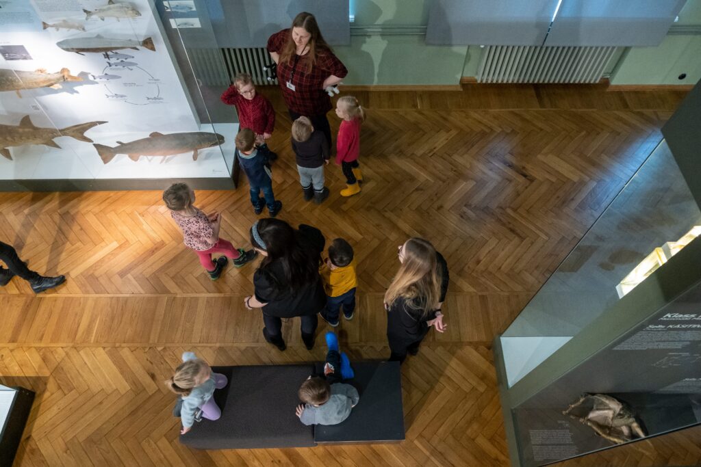 Õppeprogrammis osalevad lapsed tutvuvad Tartu Ülikooli loodusmuuseumi püsiekspositsiooniga.