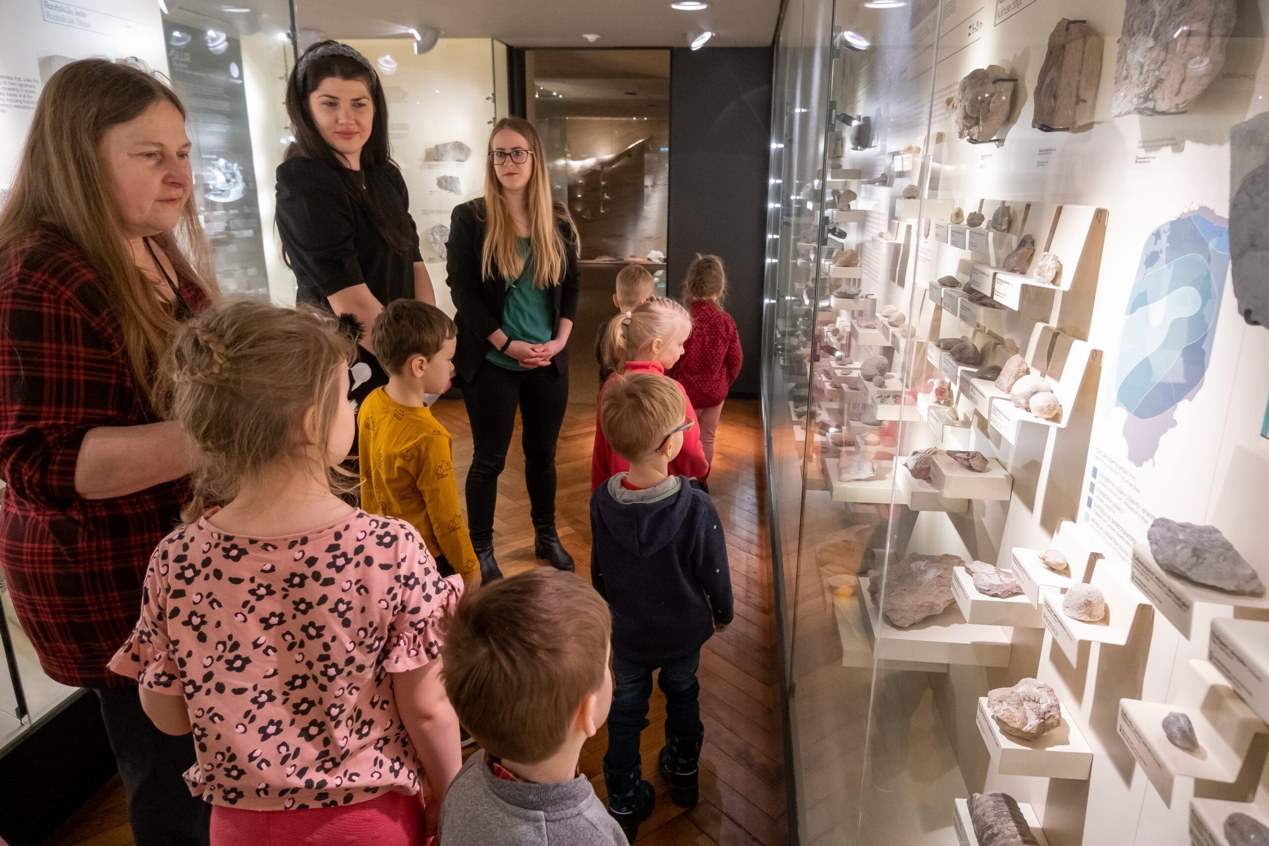 Õppeprogrammis osalevad lapsed tutvuvad Tartu Ülikooli loodusmuuseumi püsiekspositsiooniga.