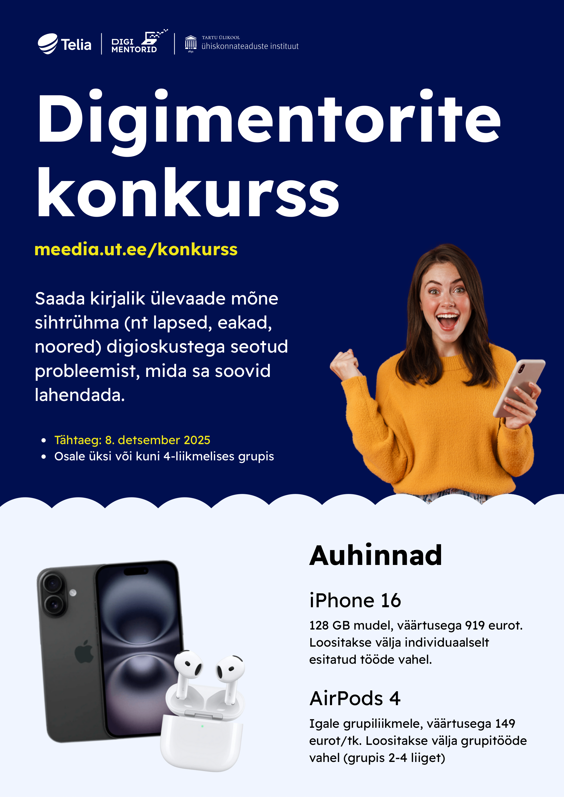 • Oma mõtteid saab esitada kuni 8. detsembrini 2025. Parimatele töödele on auhinnad: meedia.ut.ee/konkurss.