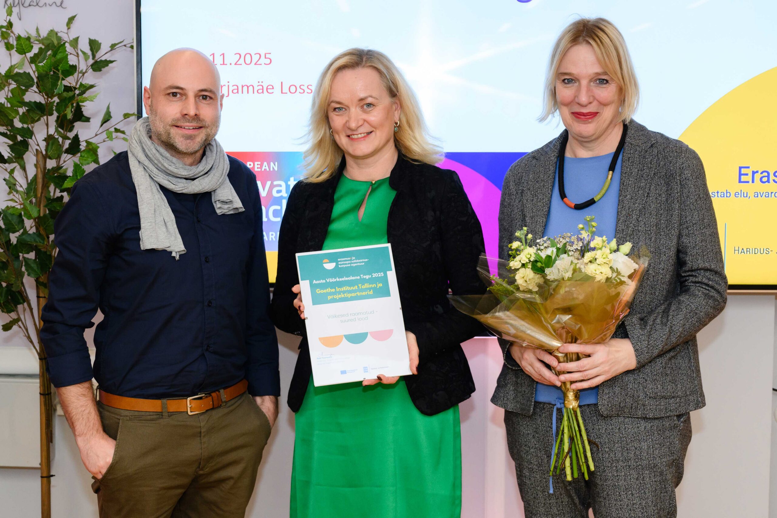 Tallinna Goethe Instituut ja tema koostööpartnerid said Aasta Võõrkeelealase Teo auhinna projekti „Väikesed raamatud – suured lood“ eest. Auhinna andis välja Erasmus+ ja Euroopa Solidaarsuskorpuse agentuur. 2025. aasta eelisteemad lähtusid Euroopa ühistest väärtustest: kodanikuühiskonnast, demokraatiast ja osalusest.