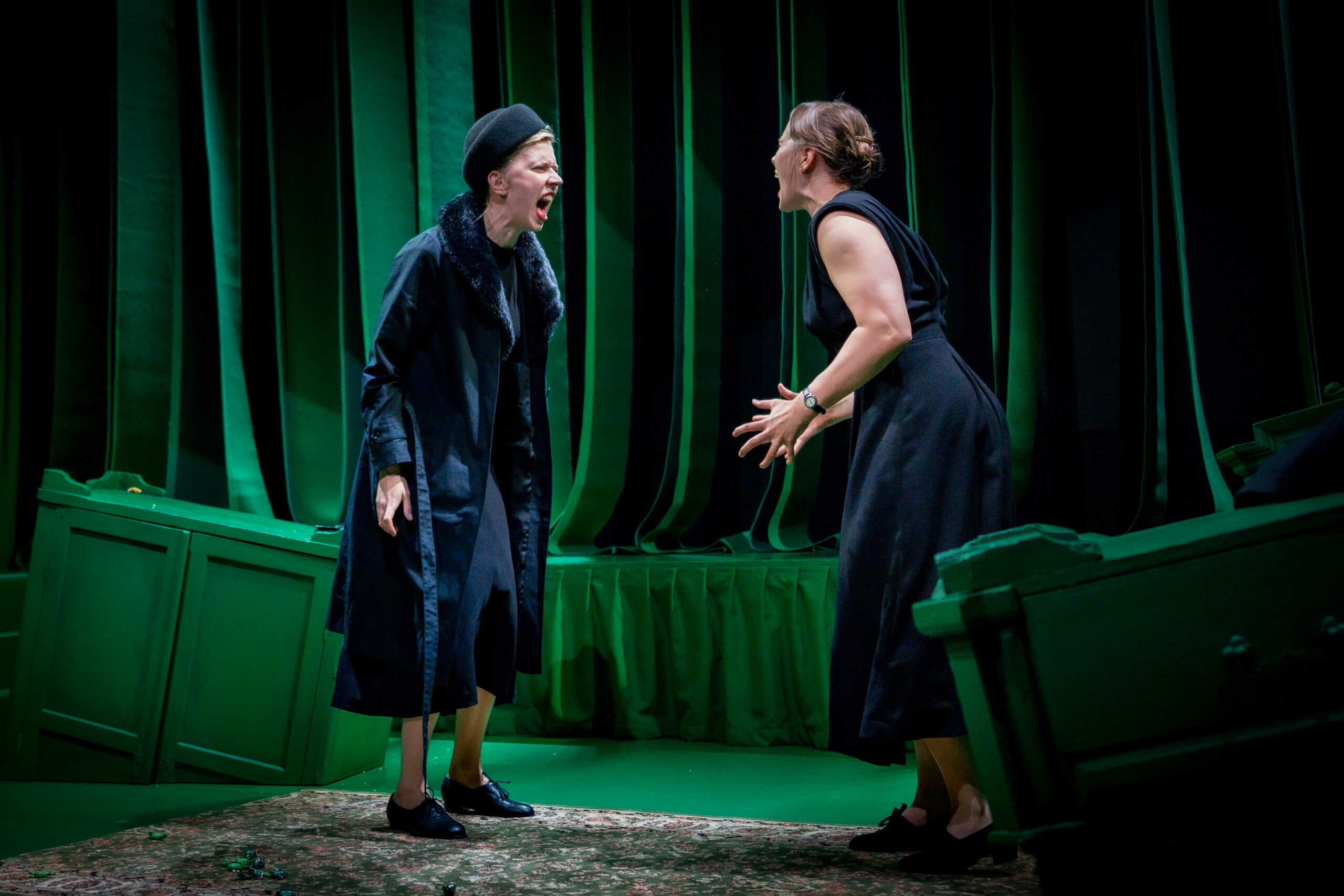 Poola autori Elżbieta Chowanieci näidend on väga mono- ja dialoogirohke, nii et oli kartus, et kehaline ja sõnaline ei pruugi tingimata üheks saada. Kartus oli asjatu, lavastaja on leidnud tasakaalu, kus tervikust saavad mõlemad pooled esile kerkida. Lavastuses sõna otseses mõttes liigutakse monoloogist dialoogi, luuakse liikumismustreid, mis toetavad, kordavad ja rõhutavad tekstis korduvaid mustreid, ent on orgaanilised ega tüki esile. Ikka otsitakse midagi kappidest, valatakse klaase täis ja pingutatakse füüsiliselt suhete pärast, nagu ema (Doris Tislar) ja vanaema (Getter Meresmaa) vägikaikavedu, kus tütre (Alice Siil) jakki rebides lastakse lapsel sellest välja vajuda. Niimoodi tõusis lapse vaatenurk fookusse veel tugevamalt kui kahe vahel kõikudes.