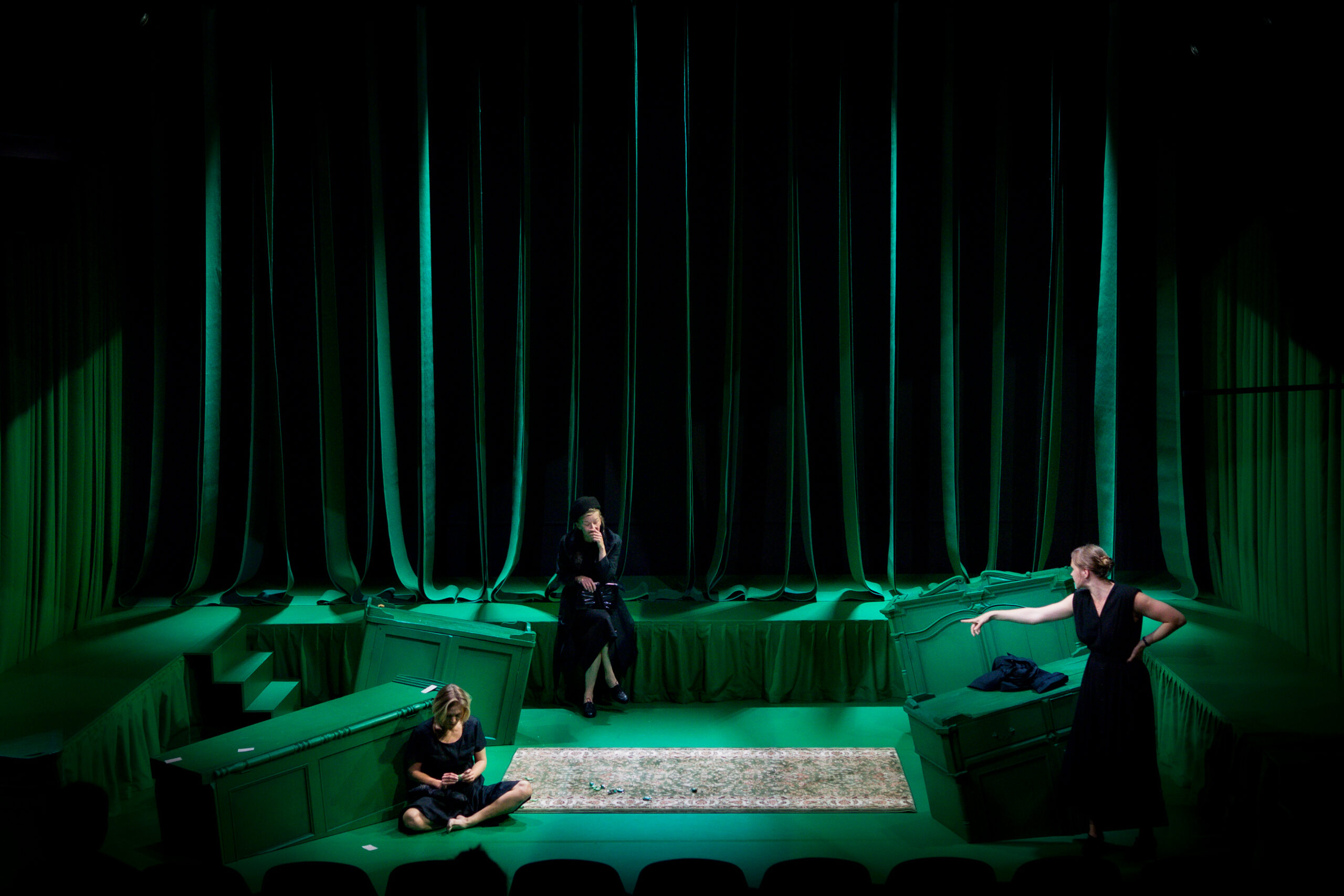 Lavastus ei saaks õnnestuda ilma suurepäraste näitlejatöödeta. Monoloogides imab igaüks neist endasse publiku jäägitu tähelepanu, dialoogides ei näidelda, vaid elatakse üksteise peal välja oma frustratsiooni ja purunenud lootusi. Mõtteliselt võib vedada paralleele noorsooteatri varasemate lavastustega „Teises toas“ (lav Mari-Liis Lill) ja „Kõik ägedad asjad“ (lav Tanel Joonas). Esimeses näeme samamoodi peremustrite edasikandumist ja püüdeid neid lõhkuda. Teine on monolavastus, kus astusid vaheldumisi üles ka „Teises toas“ mänginud Getter Meresmaa ja Doris Tislar (kolmandana Risto Vaidla) ning nendega tekkis paralleel juba Katariina Tamme sissejuhatava monoloogi ajal – tugev näitleja võib loo ka üksinda ära rääkida, publik on kaasas.