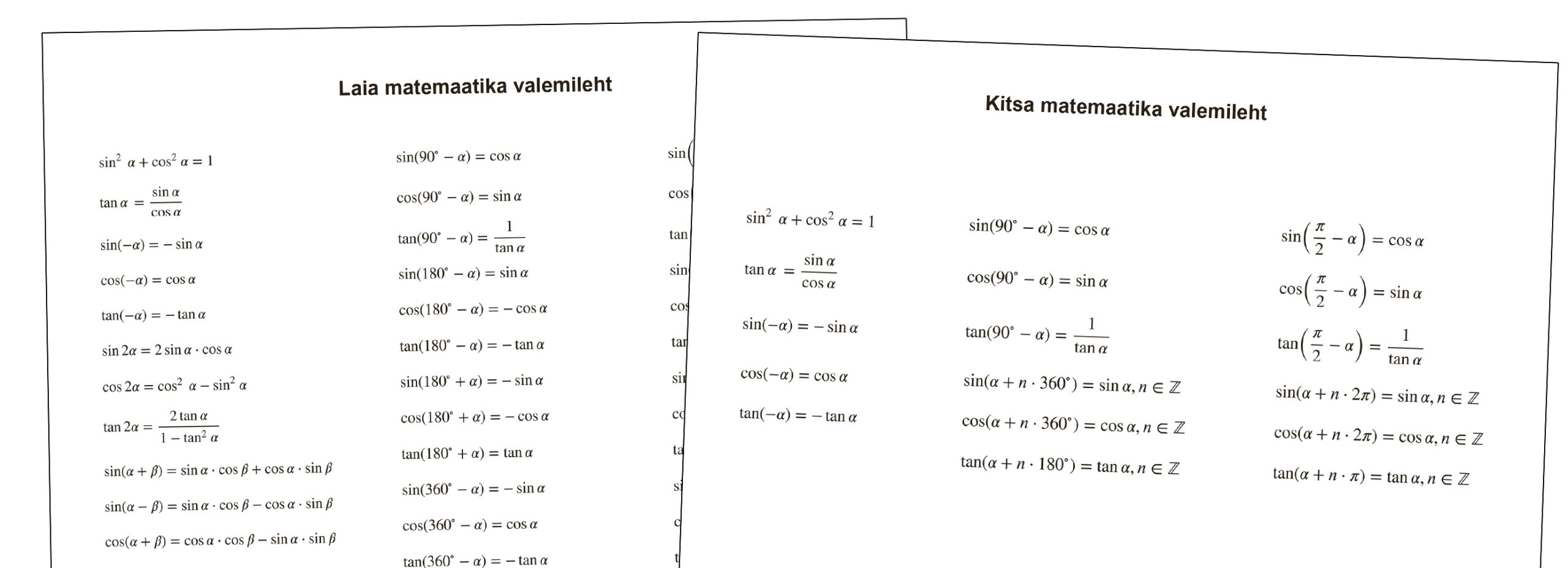 Kuna kitsa ja laia matemaatika õppekavad erinevad, otsustas töörühm, et erinema peavad ka valemilehed. Mida valemileht sisaldama peab, see põhjustas Haridus- ja Teadusministeeriumi (HTM) üldhariduspoliitika osakonna õppekava valdkonna peaeksperdi Helle Halliku sõnul omajagu pingelisi arutelusid. Ta rõhutas, et kuigi igapäevases õppetöös on õpetaja vaba otsustama, mil viisil valemilehte kasutada, siis õpilased peavad õppima valemilehega tööd tegema – nii teavad nad, millist infot see sisaldab. „See on võimalus õpetada valemeid kasutama, leidma ja mõtestama, mitte nii väga neid mehaaniliselt meelde jätma,“ lisas Hallik.