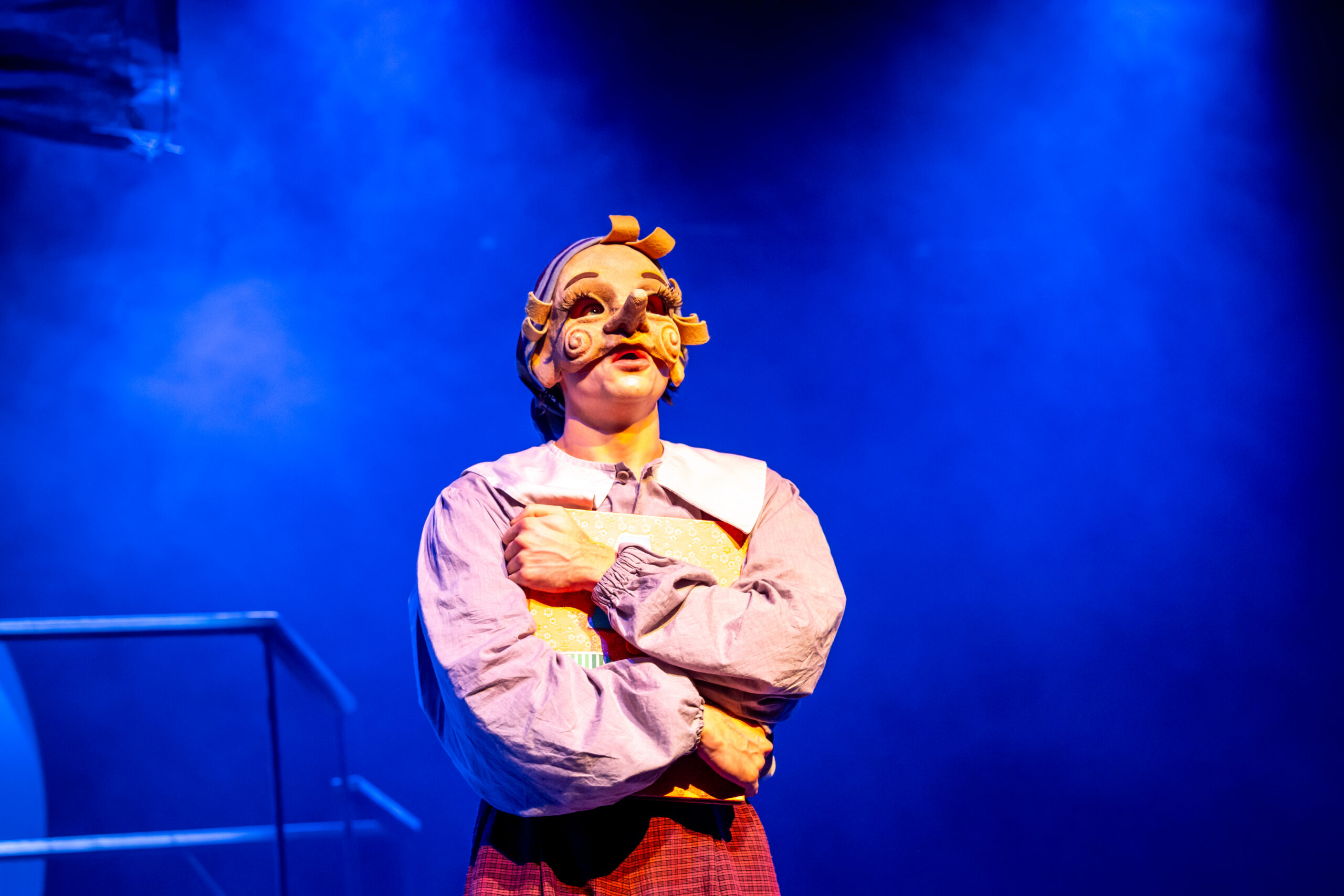 Rosita Raua fantaasiarikas kunstnikutöö oli mängu toonud ümarale pöördlavale, mis andis võimaluse keereldes liikuda sarnaselt „Miks me varastasime auto“ (2021) kujundusega. Kui aga viimases oli väiksem pöördlava ehitatud lava äärde, siis nüüd oli see suuremana lava keskel ja markeeris kõiki sündmuskohti: küll muutus kooliks, küll teatrilavaks, küll valaskala sisemuseks jne. Lavakujunduse ja kostüümide vaimukas leid olid riidepuud, mida tõlgendaksin kui kohta, kus ripuvad nii teatrikostüümid kui nukud.