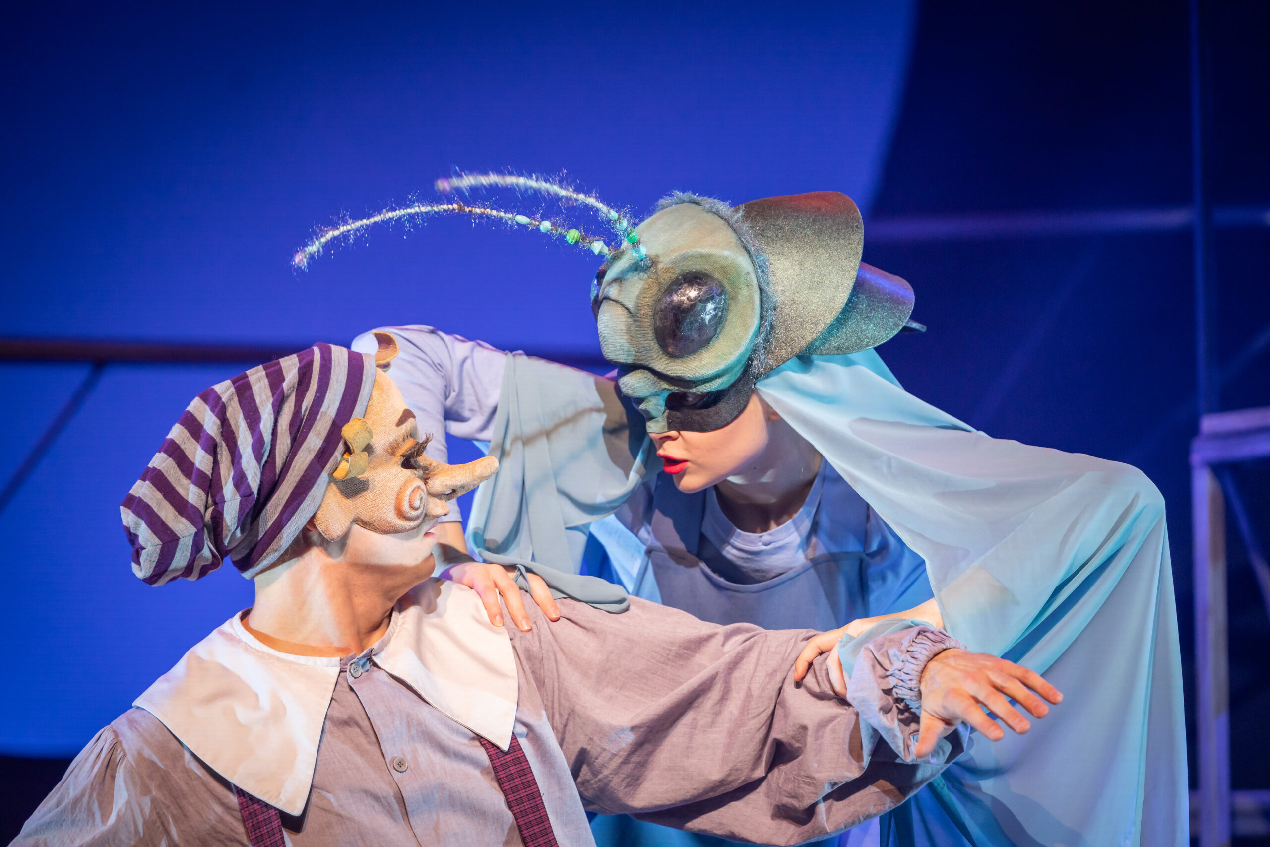Pinocchio osatäitjad, muidu eri tüpaaže esindavad Risto Vaidla ja Karl Sakrits olid üllatavalt sarnased, kuni sinnani, et maski all muutusid isegi hääled sarnasteks. Etenduse alguse sissejuhatuses kõlas Vaidla morganfreemanlik tämber kogu oma sügavuses, maski tagant kostis aga poisikeselik Pinocchio. Geppetto ehk Pinocchio isa kujuna oli Kobinis rohkem isalikkust või vanamehelikkust, samas Savi mängus paistis rohkem hoogu. Haldjana üles astunud Eliis-Maria Koit ja Laura Nõlvak olid võrdselt õrnad ja ebamaised, kes hoidsid ja suunasid publiku fookust.