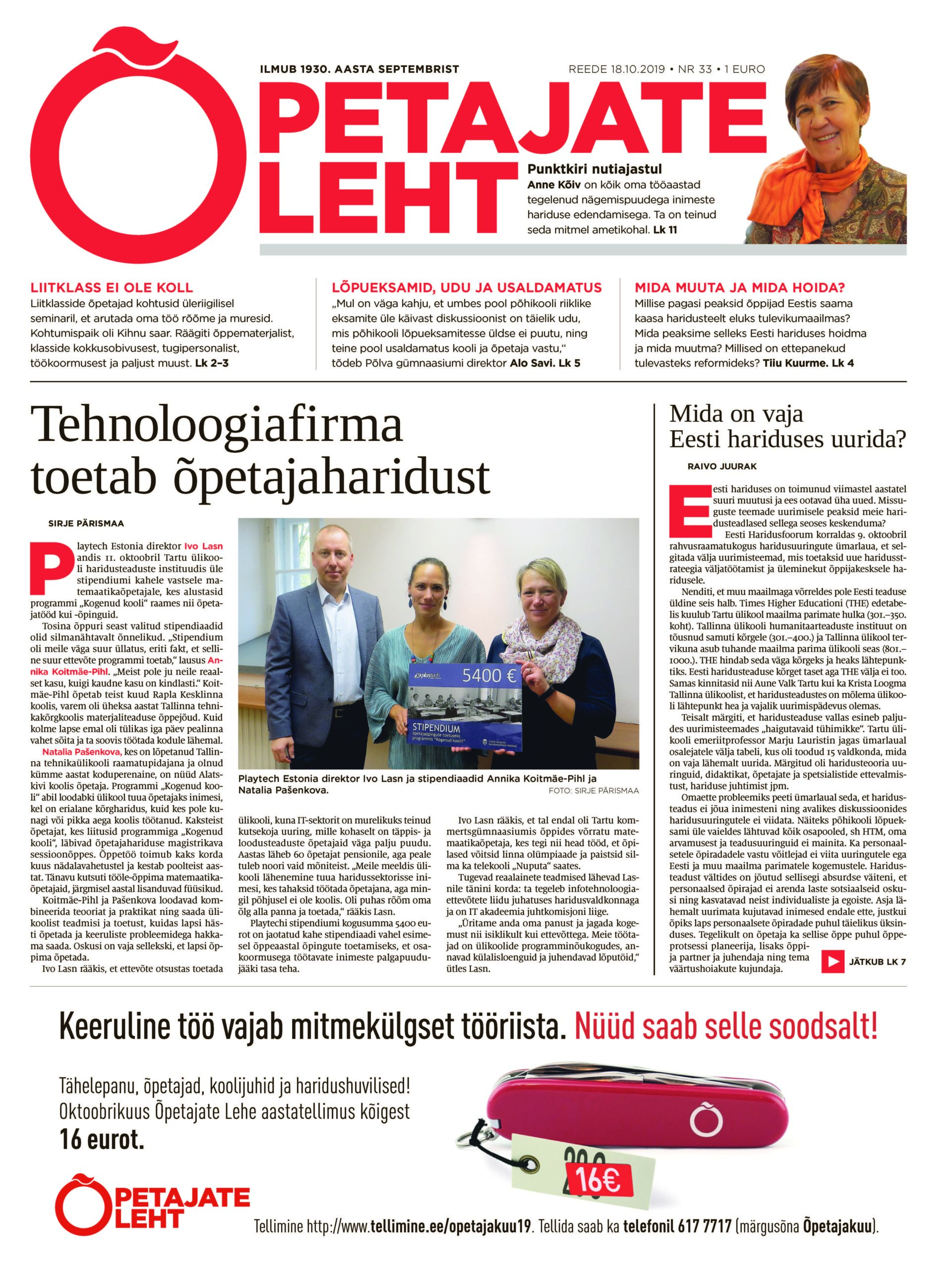 Playtech Estonia direktor Ivo Lasn andis 11. oktoobril Tartu ülikooli haridusteaduste instituudis üle stipendiumi kahele vastsele matemaatikaõpetajale, kes alustasid programmi „Kogenud kooli“ raames nii õpetajatööd kui -õpinguid.