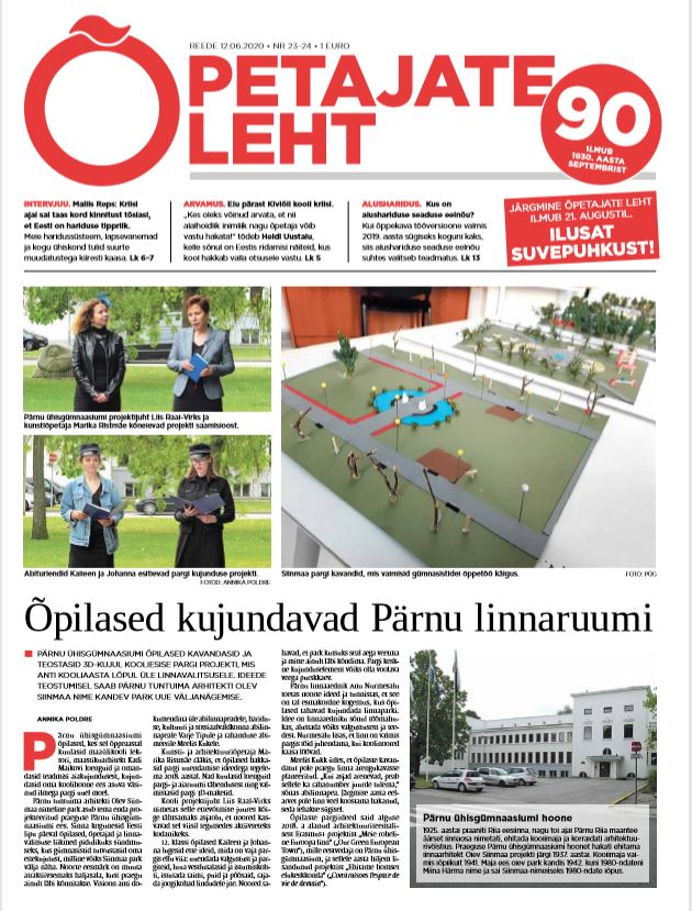 Pärnu ühisgümnaasiumi õpilased kuulasid kooliaasta jooksul loenguid aiakujundusest ja koostasid seejärel oma kooli ees asuvale pargile uued kavandid. Lõplik versioon õpilaste loodud projektist anti kooliaasta lõpus üle linnavalitsusele.