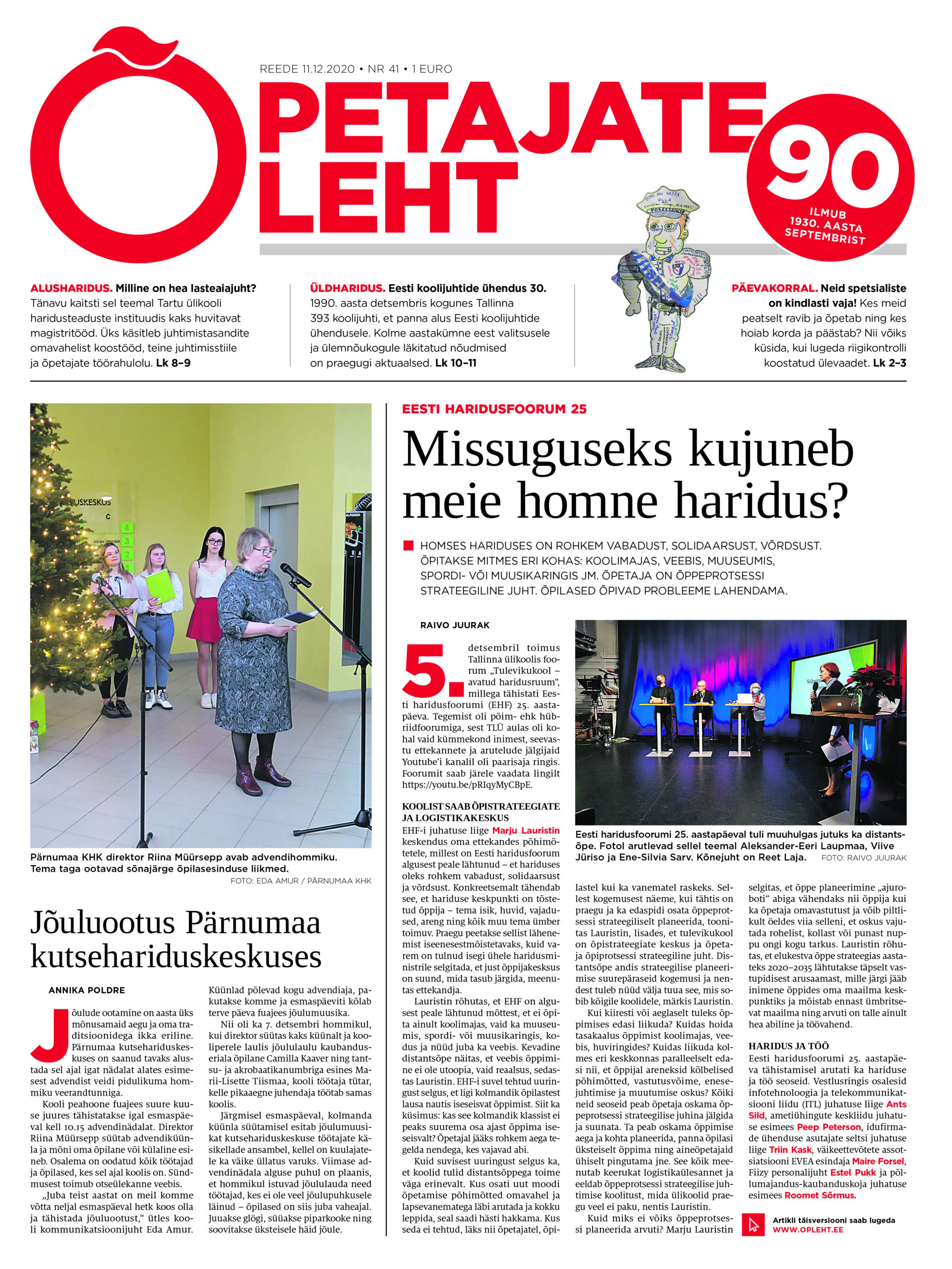 8. detsembril 1990 kogunes Estonia teatri saali 393 koolijuhti, et panna alus Eesti koolijuhtide ühendusele (EKJÜ). Kolme aastakümne eest valitsusele ja ülemnõukogule läkitatud nõudmised – tõsta haridustöötajate palgamäär 1,5-kordseks Eesti keskmisest töötasust ja lahendada vene rahvuskooli arenguprobleemid ‒ on praegugi aktuaalsed.
