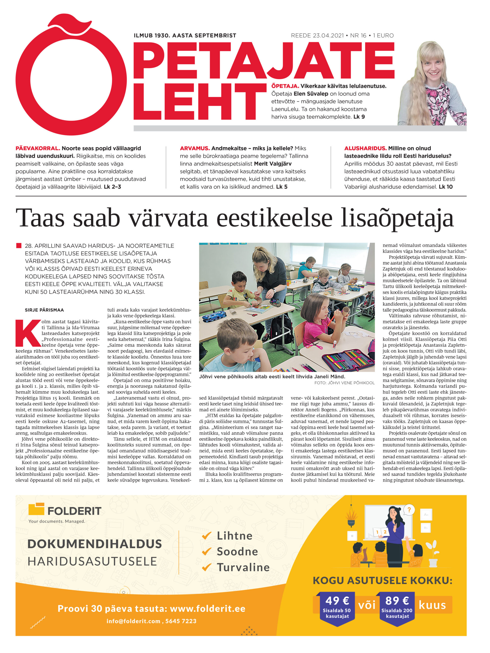 28. aprillini saavad haridus- ja noorteametile esitada taotlusi eestikeelse lisaõpetaja värbamiseks lasteaiad ja koolid, kus rühmas või klassis õpivad muu kodukeelega lapsed ning soovitakse tõsta eesti keele õppe kvaliteeti. Välja valitakse kuni 50 lasteaiarühma ning kuni 30 klassi.