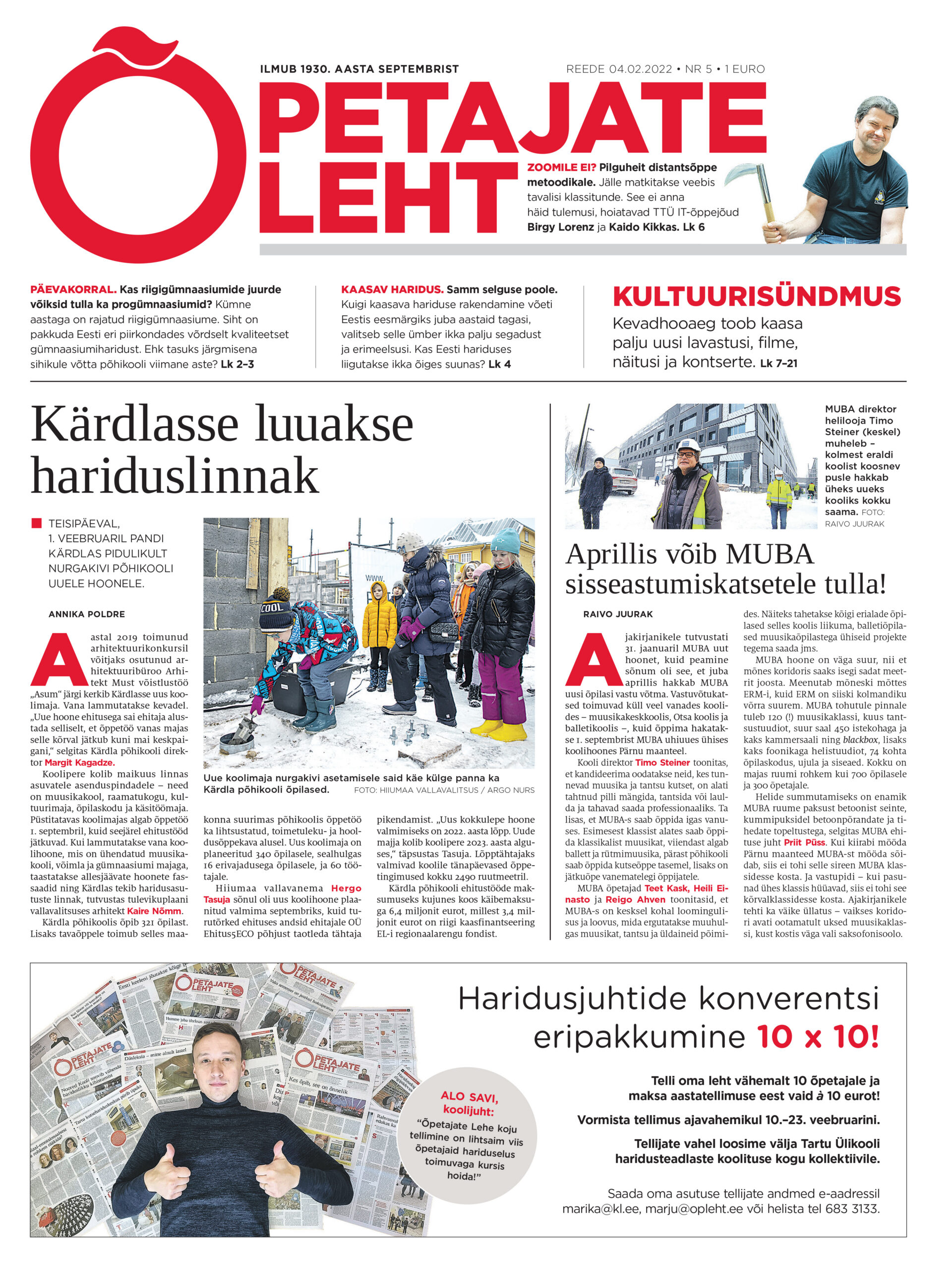 Kümne aastaga on hoogsalt rajatud riigigümnaasiume ja koolivõrgu programmi kohaselt peaks neid järgmisel aastal olema juba paar tosinat. Siht on pakkuda Eesti eri piirkondades võrdselt kvaliteetset gümnaasiumiharidust. Ehk tasub järgmisena sihikule võtta põhikooli viimase aste ja riigigümnaasiumide tiiva alla võtta ka progümnaasiumi klassid?