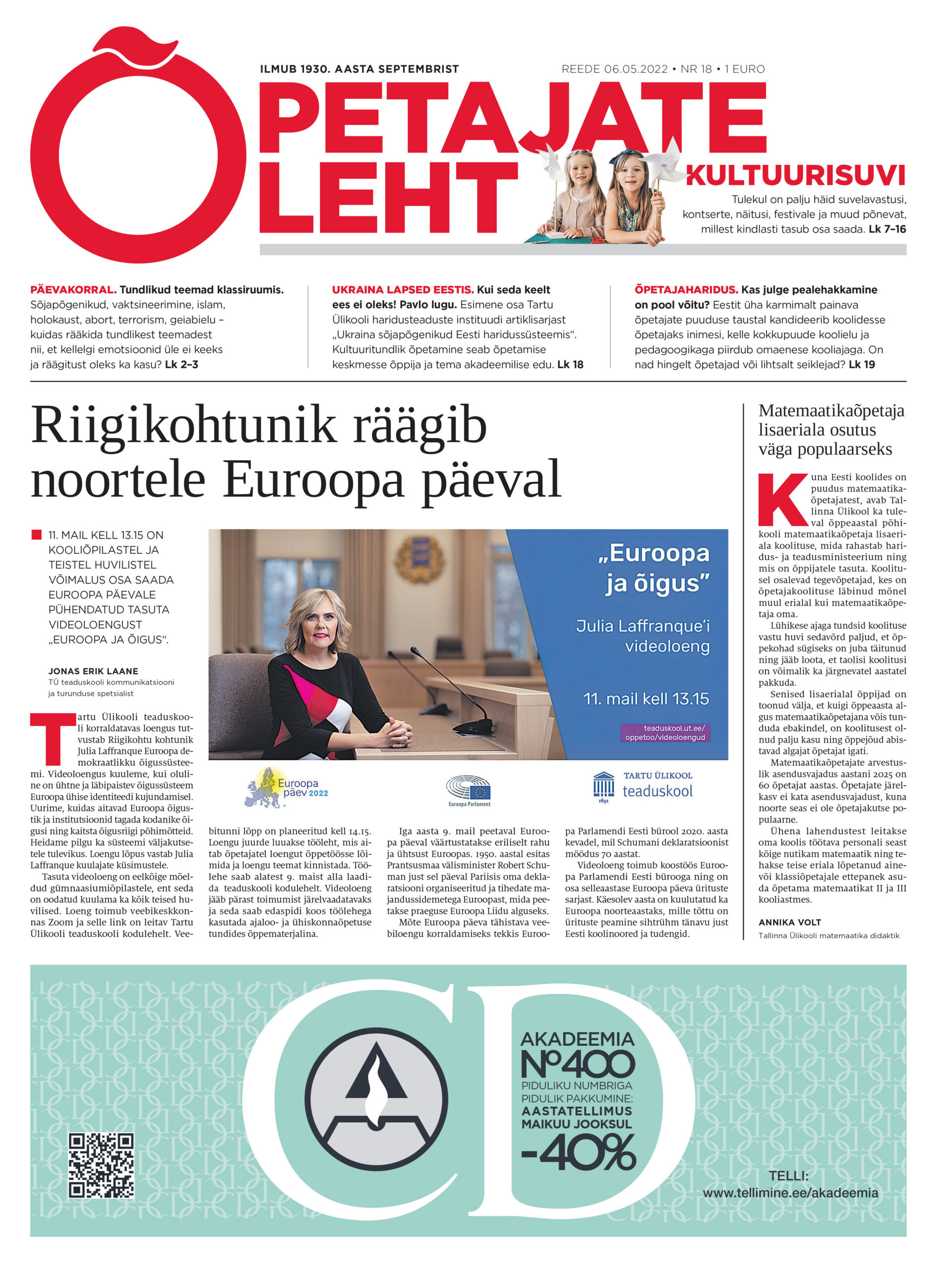 „Mulle pole elu sees nii palju tööd pakutud kui nüüd, aga 1980. aastatel, kui Tallinna elama tulin, oli mul raskusi töökoha leidmisega,“ tõdeb pool sajandit logopeedi ja eripedagoogina tegutsenud Evi Kraan, kelle jaoks on 9. mai hoopis teise tähendusega kui suuremal osal ülejäänud maailmast. Nimelt tähistab kogenud tugispetsialist ja koolijuht sel lehekuu päeval oma 75. sünnipäeva. Ta möönab, et nüüdsel ajal pööratakse laste kõnele rohkem tähelepanu kui varem, pealegi kehtib meil kaasava hariduse põhimõte, mille järgi peavad kõik laste- ja õppeasutused tegelema laste iseärasuste ja vajadustega, sealhulgas kõneprobleemidega.