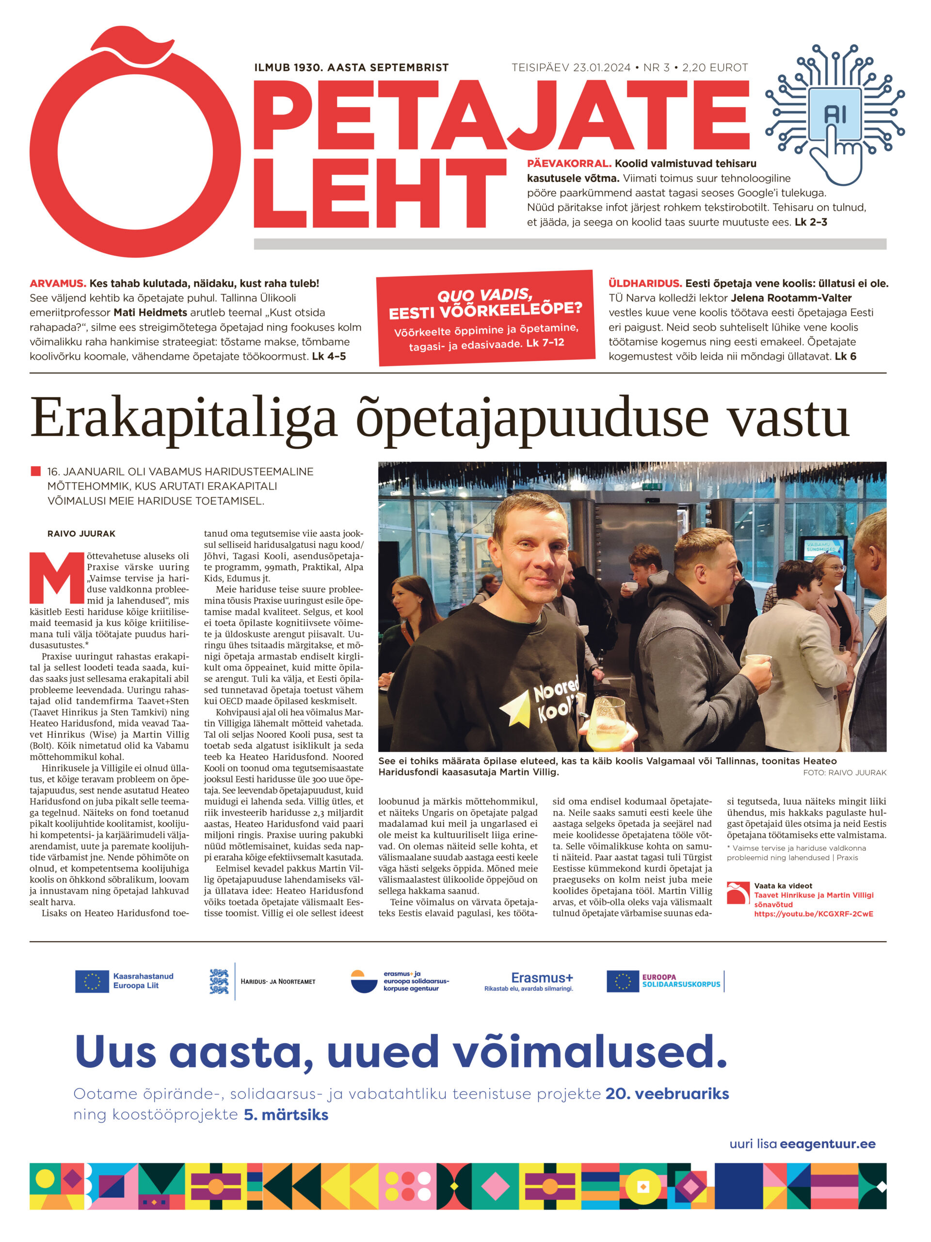 Aasta 2023 oli võõrkeeleõpetajate jaoks muutusterohke: lisaks riiklikust hariduspoliitikast tulenevale B-võõrkeele valiku mitmekesistamise algatusele tõi suuri muutusi tehisaru plahvatuslik areng. Kui masintõlge koos mitmesuguste toimetamisprogrammidega ning keeleõppeprogrammid on võõrkeeleõppes kasutusel olnud juba aastaid, siis tehisarust juturoboti Chat GPT saabumine põhjustas tõelise raputuse üleilmses hariduselus: ümber tuli mõtestada, mis on looming, autoriõigus, plagiaat, rääkimata juturoboti mõjust võõrkeelte õpetamisele. Tallinna Ülikooli ühiskonnateaduste instituudi õppejuht Tuuli Oder vaatab võõrkeelte erilehes tagasi võõrkeeleõpetusele eelmisel aastal ja vaatleb alanud aasta ülesandeid-suundumusi.